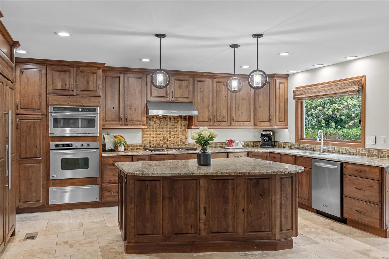 Appliances: Dishwasher, Disposal, Double Oven, Dryer, Gas Cooktop, Range Hood, Refrigerator, Warming Drawer, Washer, Gas Water Heater